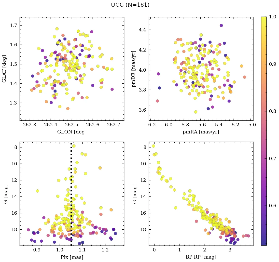 | Cluster | % | RA | DEC | Plx | pmRA | pmDE | Rv | UTI |