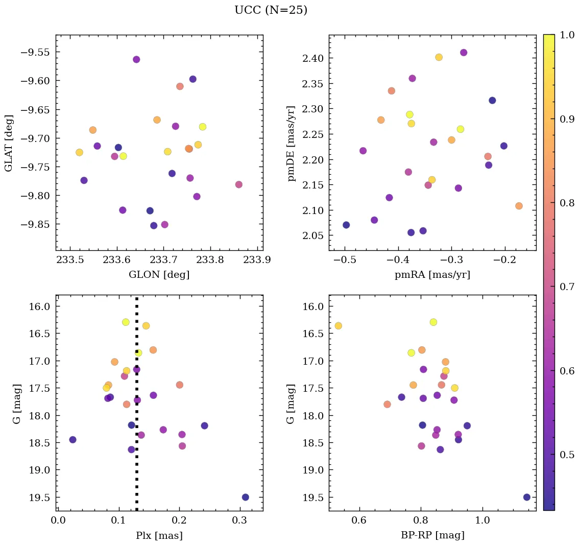 | UCC | 99999â | 103.392 | -22.838 | 0.13 | -0.344 | 2.216 | â |