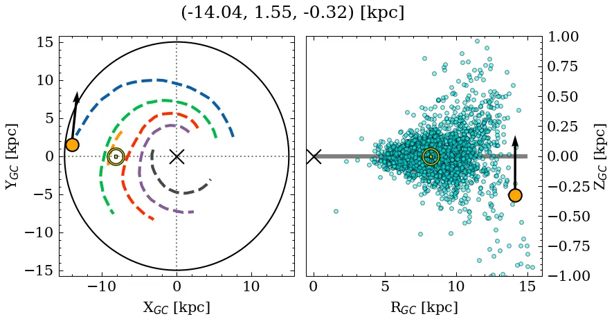 (*): The parallax distance estimate (~6.98 kpc) differs significantly from the median photometric distance (~4.90 kpc).