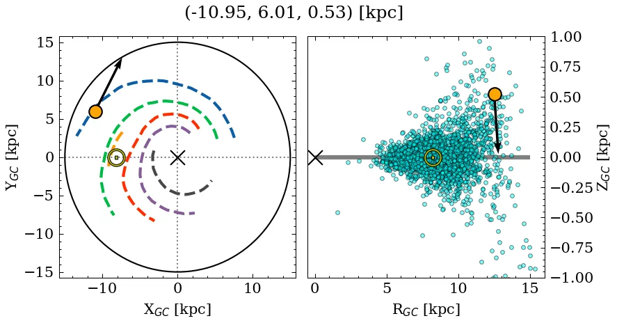 (*): The parallax distance estimate (~7.69 kpc) differs significantly from the median photometric distance (~14.13 kpc).
