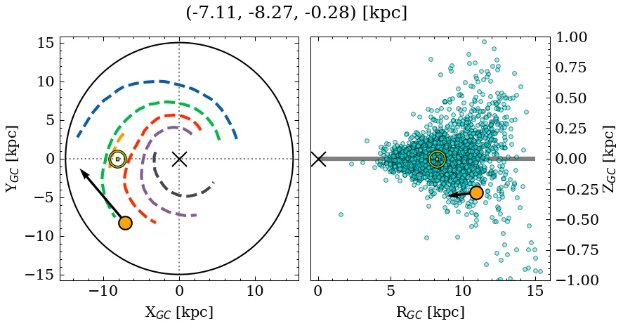 (*): The parallax distance estimate (~10.00 kpc) differs significantly from the median photometric distance (~7.24 kpc).