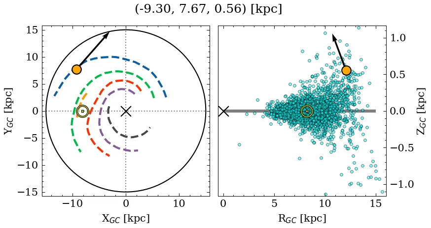 (*): The parallax distance estimate (~9.21 kpc) differs significantly from the median photometric distance (~5.50 kpc).