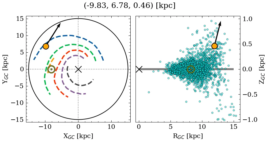 (*): The parallax distance estimate (~8.14 kpc) differs significantly from the median photometric distance (~4.57 kpc).