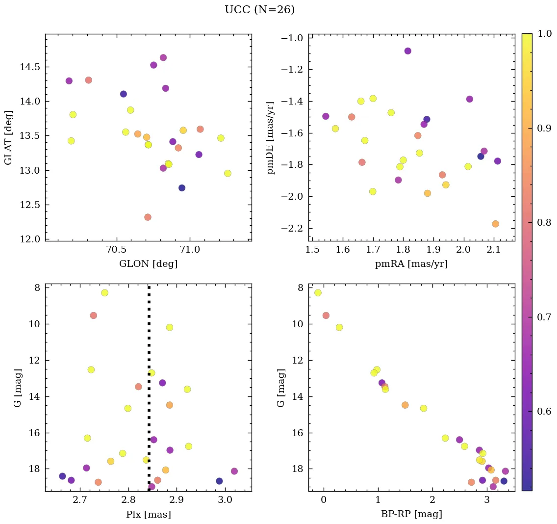 CWNU 510 is a poorly populated, moderately dense object of high C3 quality. Its parallax locates it at a very close distance, above the mid-plane, affected by low extinction. It is catalogued as a near-solar metallicity, young cluster (see Parameters). It is rarely studied in the literature.