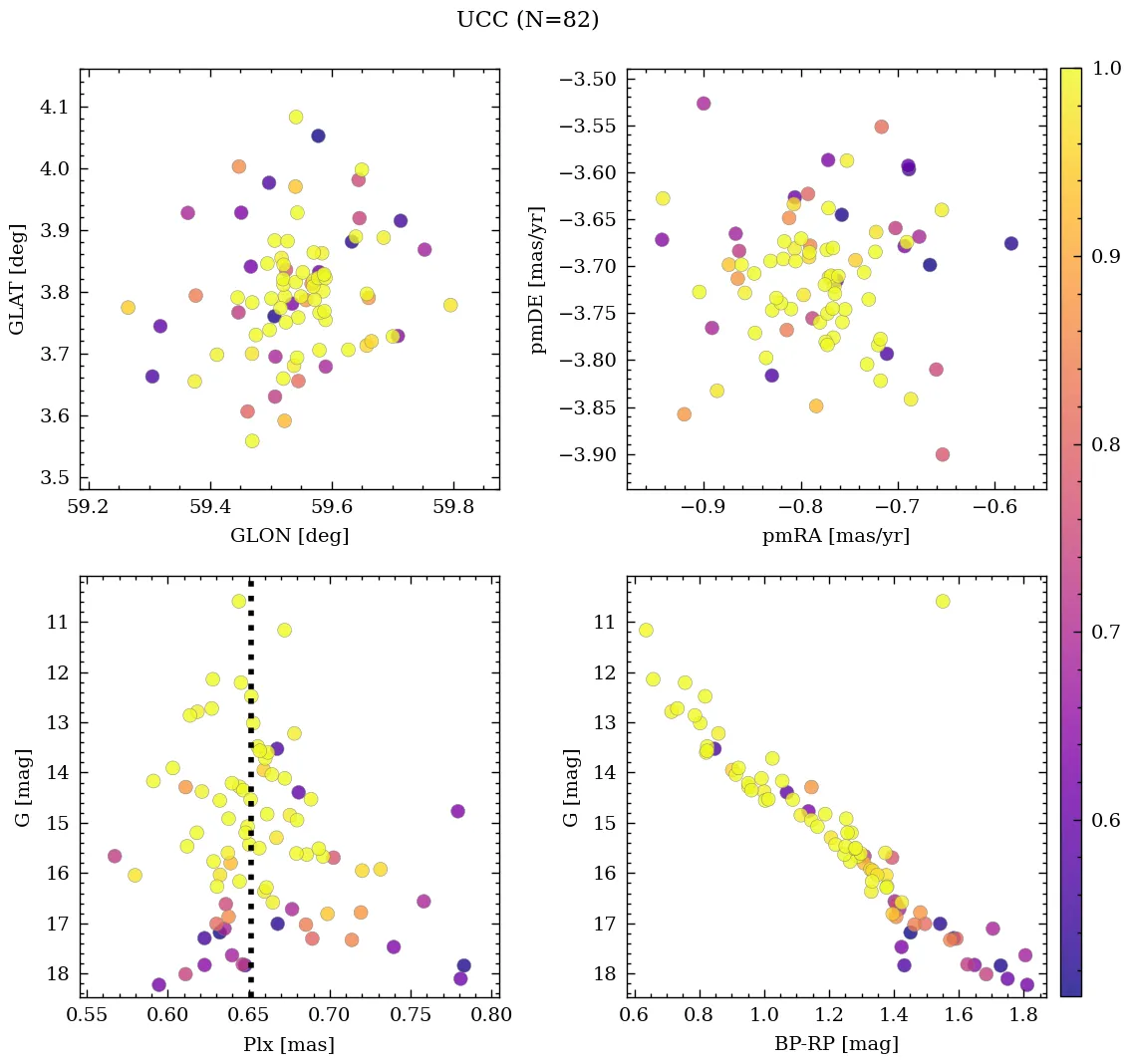 | Reference | Year | Dist [kpc] | Av [mag] | DAv [mag] | Age [Myr] | [Fe/H] [dex] | Mass [Msun] | Bfr | BSS |