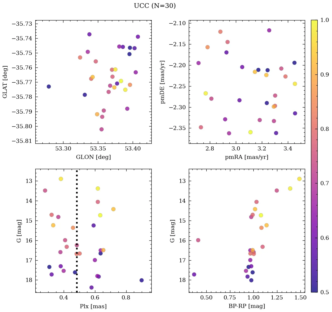 | Reference | Year | Dist [kpc] | Av [mag] | DAv [mag] | Age [Myr] | [Fe/H] [dex] | Mass [Msun] | Bfr | BSS |