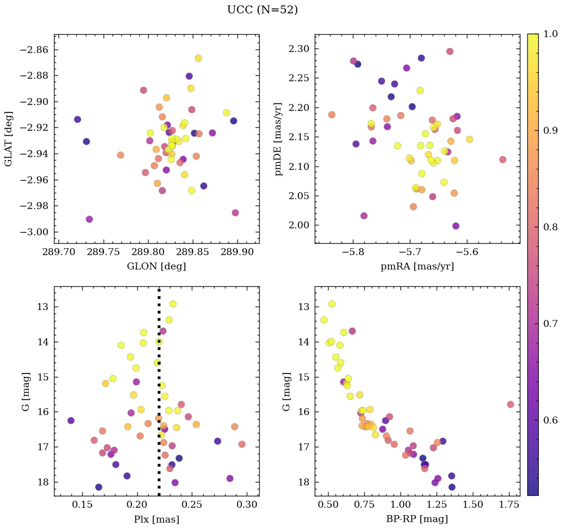 | Reference | Year | Dist [kpc] | Av [mag] | DAv [mag] | Age [Myr] | [Fe/H] [dex] | Mass [Msun] | Bfr | BSS |