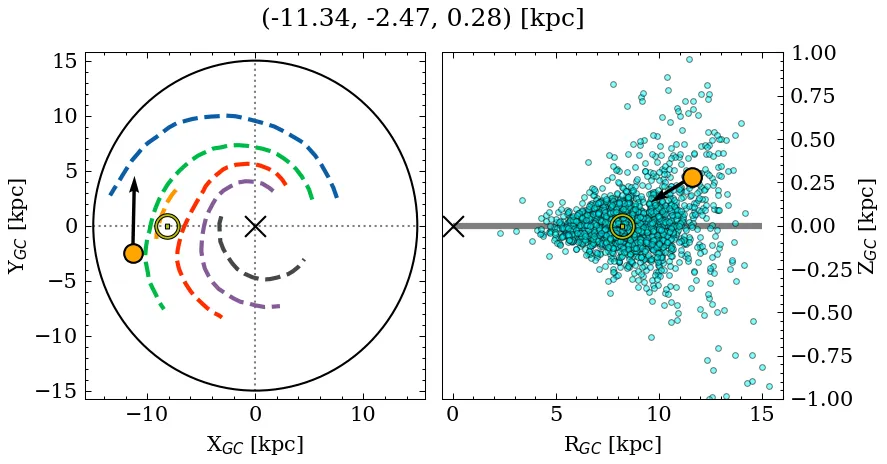 (*): The parallax distance estimate (~4.43 kpc) differs significantly from the median photometric distance (~3.20 kpc).