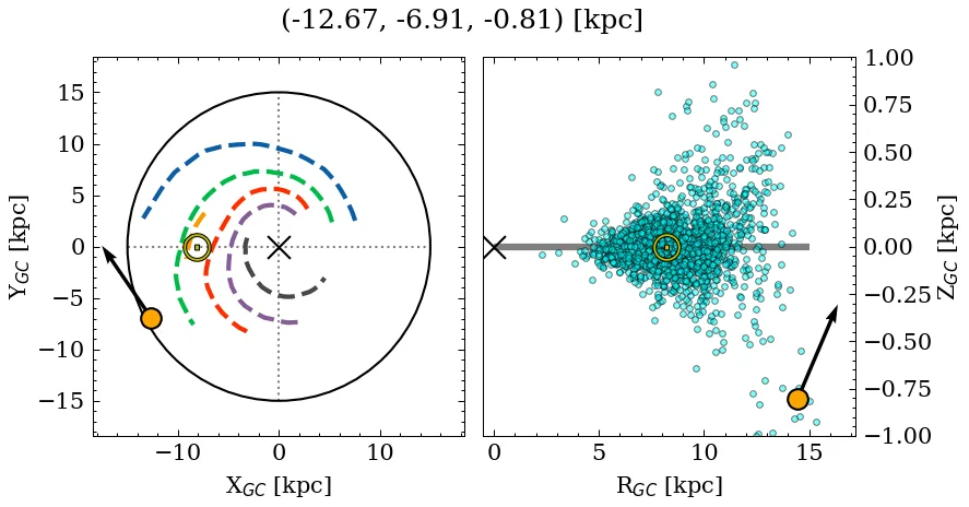 (*): The parallax distance estimate (~9.97 kpc) differs significantly from the median photometric distance (~7.46 kpc).