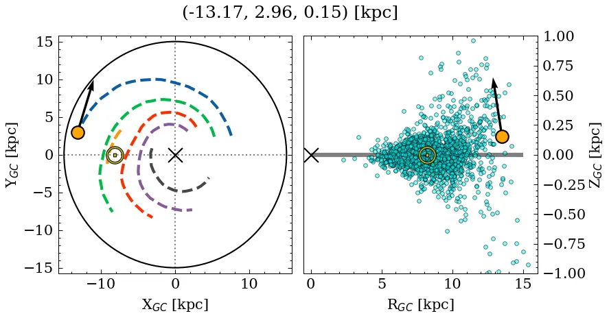 (*): The parallax distance estimate (~6.64 kpc) differs significantly from the median photometric distance (~3.83 kpc).