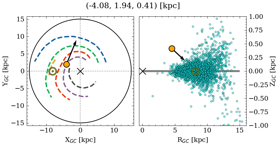 (*): The parallax distance estimate (~4.95 kpc) differs significantly from the median photometric distance (~3.50 kpc).