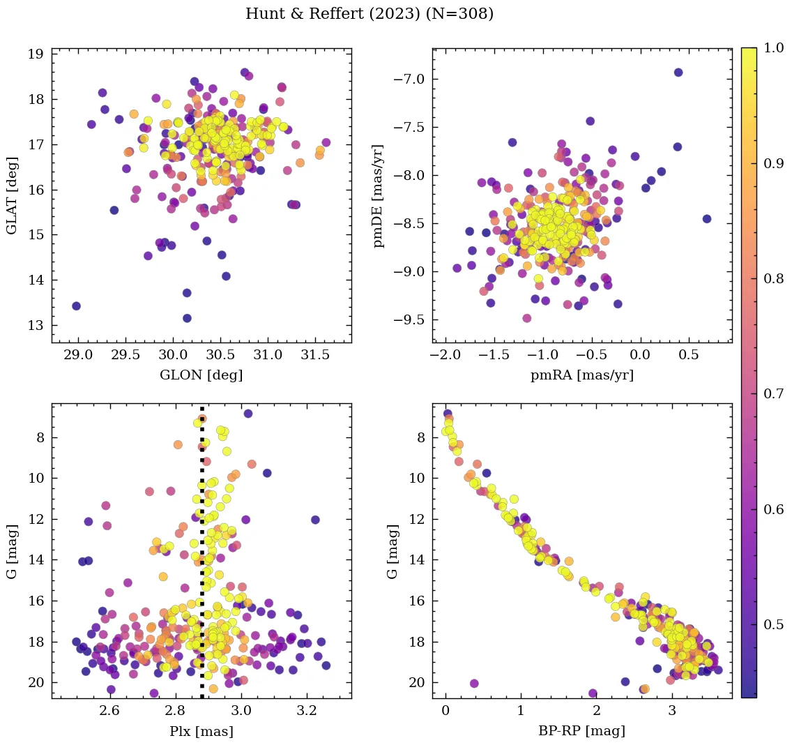 | Cantat-Gaudin & Anders | 2020 | 266.554 | 5.615 | 2.868 | -0.909 | -8.52 | â |