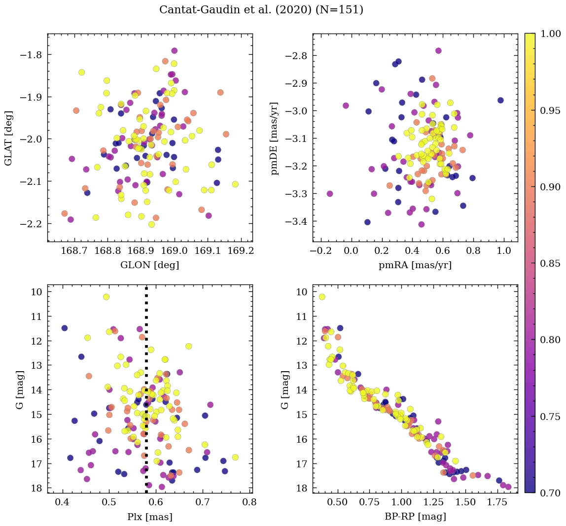 | Cantat-Gaudin & Anders | 2020 | 77.033 | 37.02 | 0.581 | 0.506 | -3.145 | β |