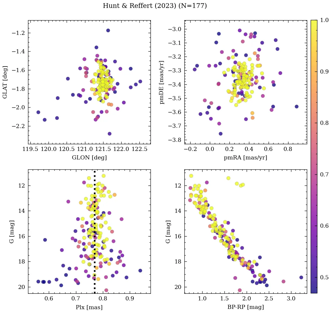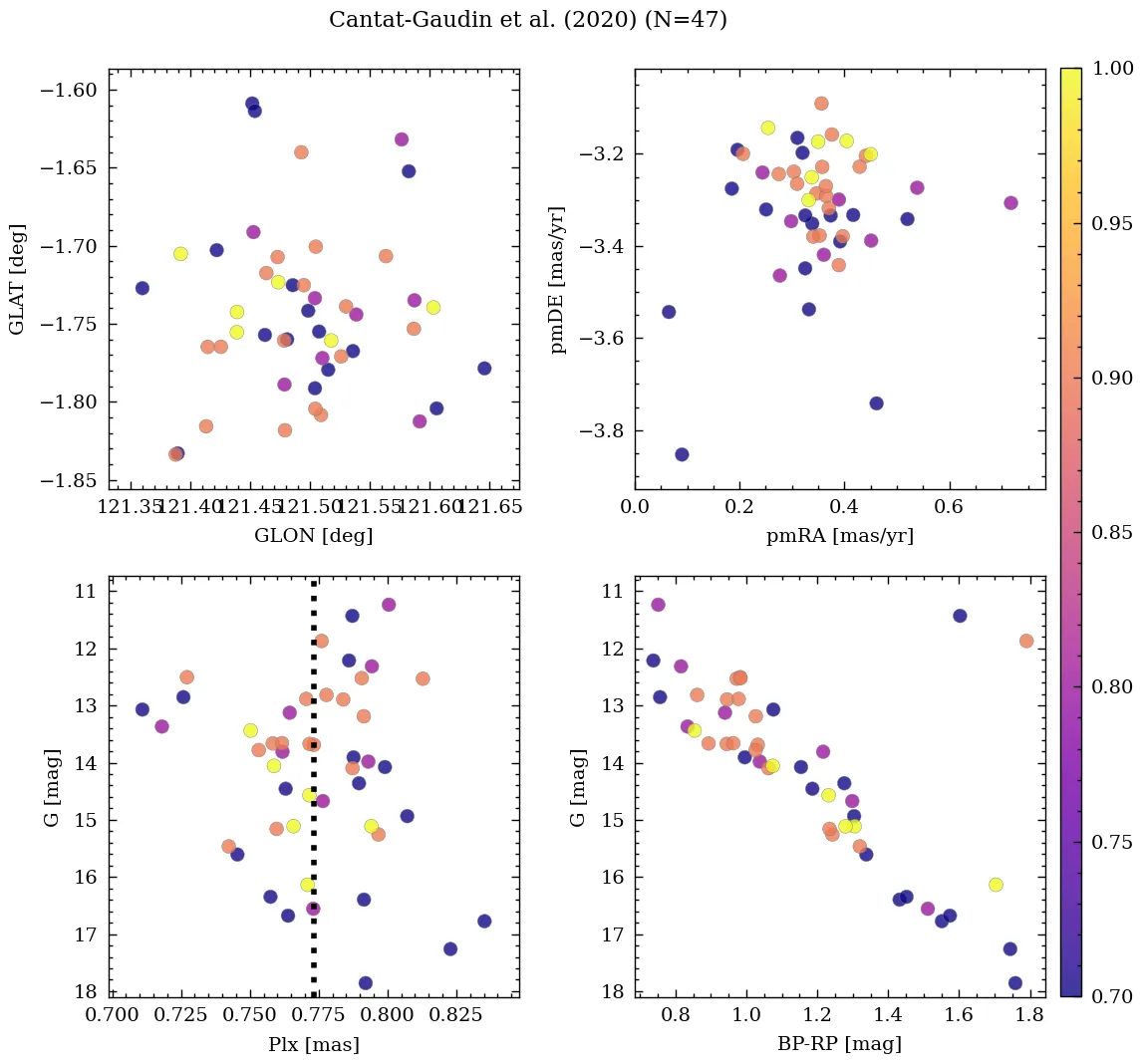 | Cantat-Gaudin & Anders | 2020 | 9.885 | 61.09 | 0.772 | 0.338 | -3.306 | â |