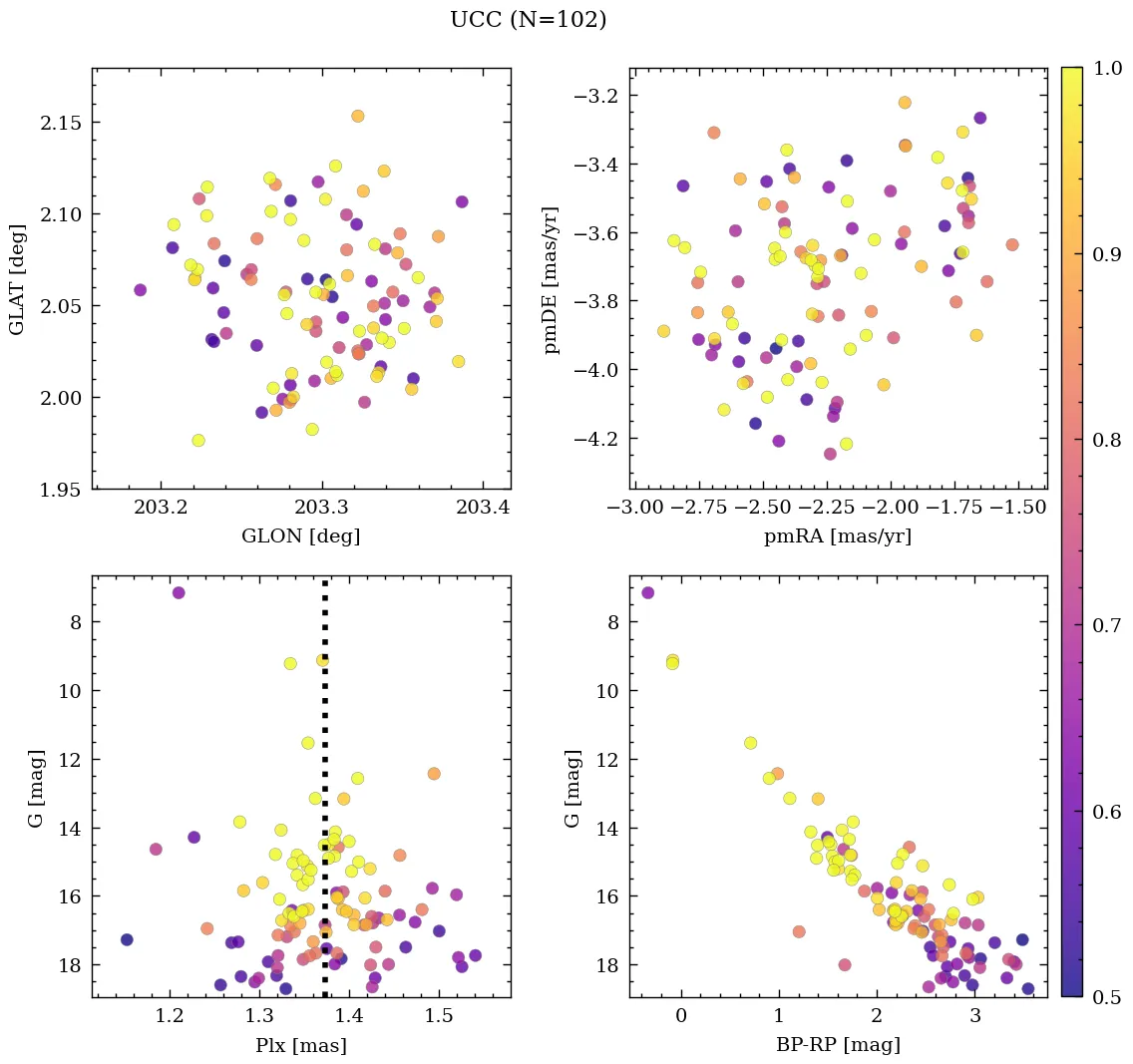 | Reference | Year | RA [deg] | DEC [deg] | Plx [mas] | pmRA [mas/yr] | pmDE [mas/yr] | Rv [km/s] |