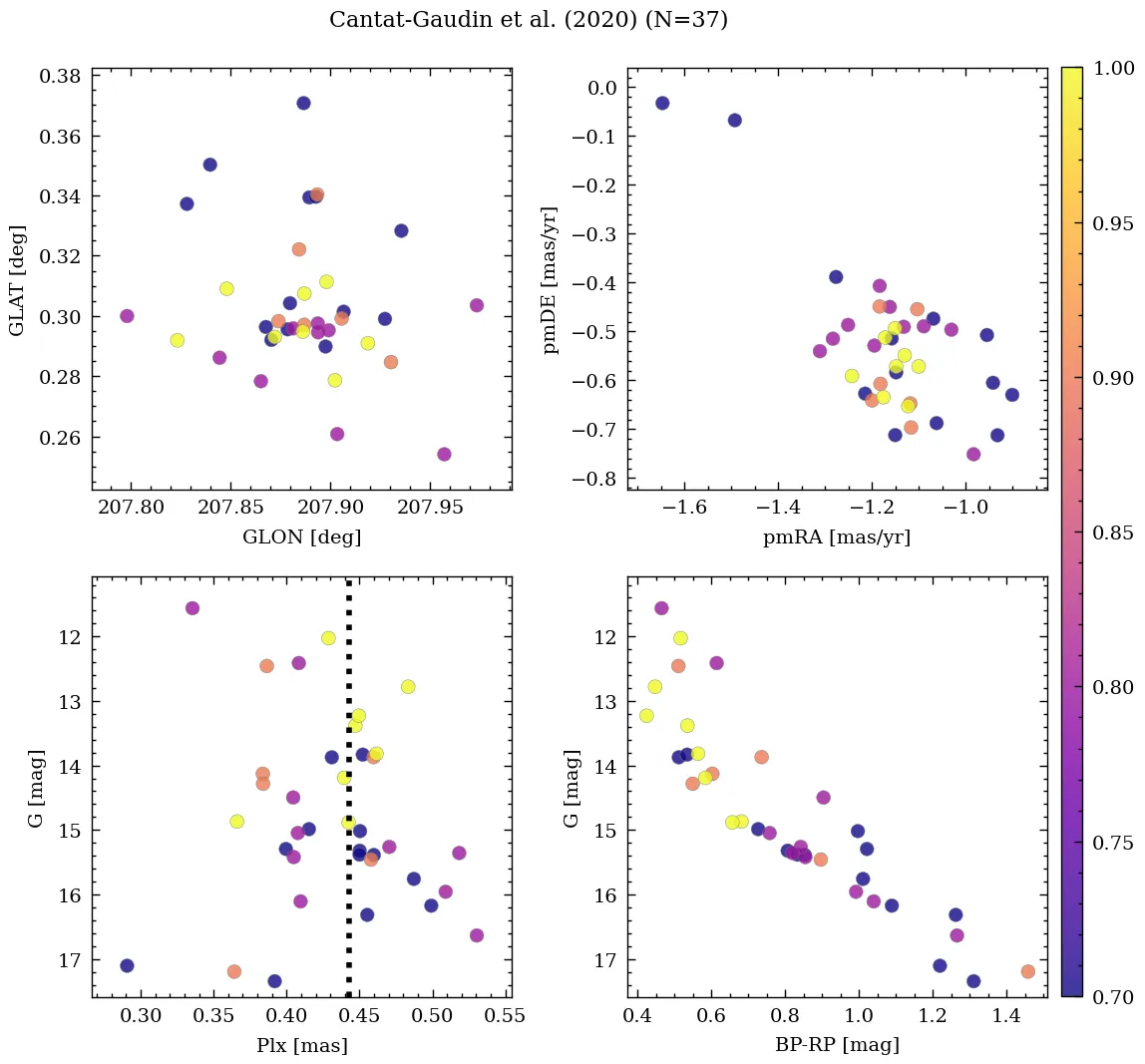 | Cantat-Gaudin et al. | 2020 | 100.818 | 4.628 | 0.438 | -1.143 | -0.559 | â |