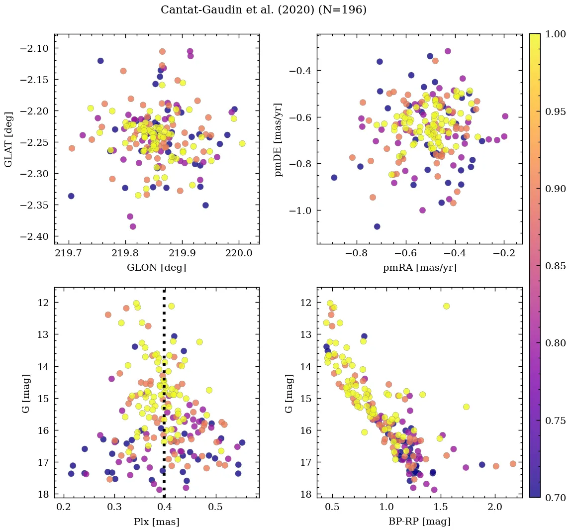 | Cantat-Gaudin & Anders | 2020 | 104.02 | -7.18 | 0.393 | -0.495 | -0.634 | â |