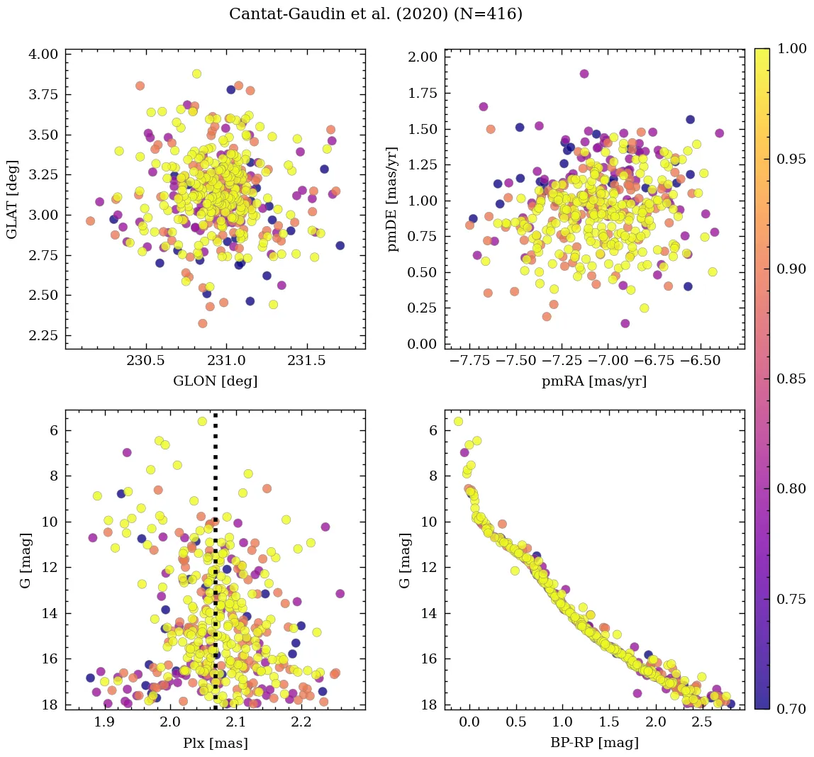 | Cantat-Gaudin & Anders | 2020 | 114.147 | -14.489 | 2.07 | -7.057 | 0.993 | â |