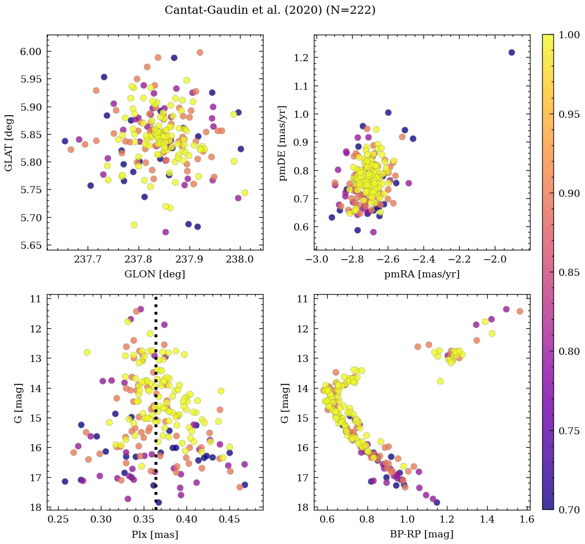 | Cantat-Gaudin & Anders | 2020 | 120.201 | -19.056 | 0.363 | -2.708 | 0.764 | β |
