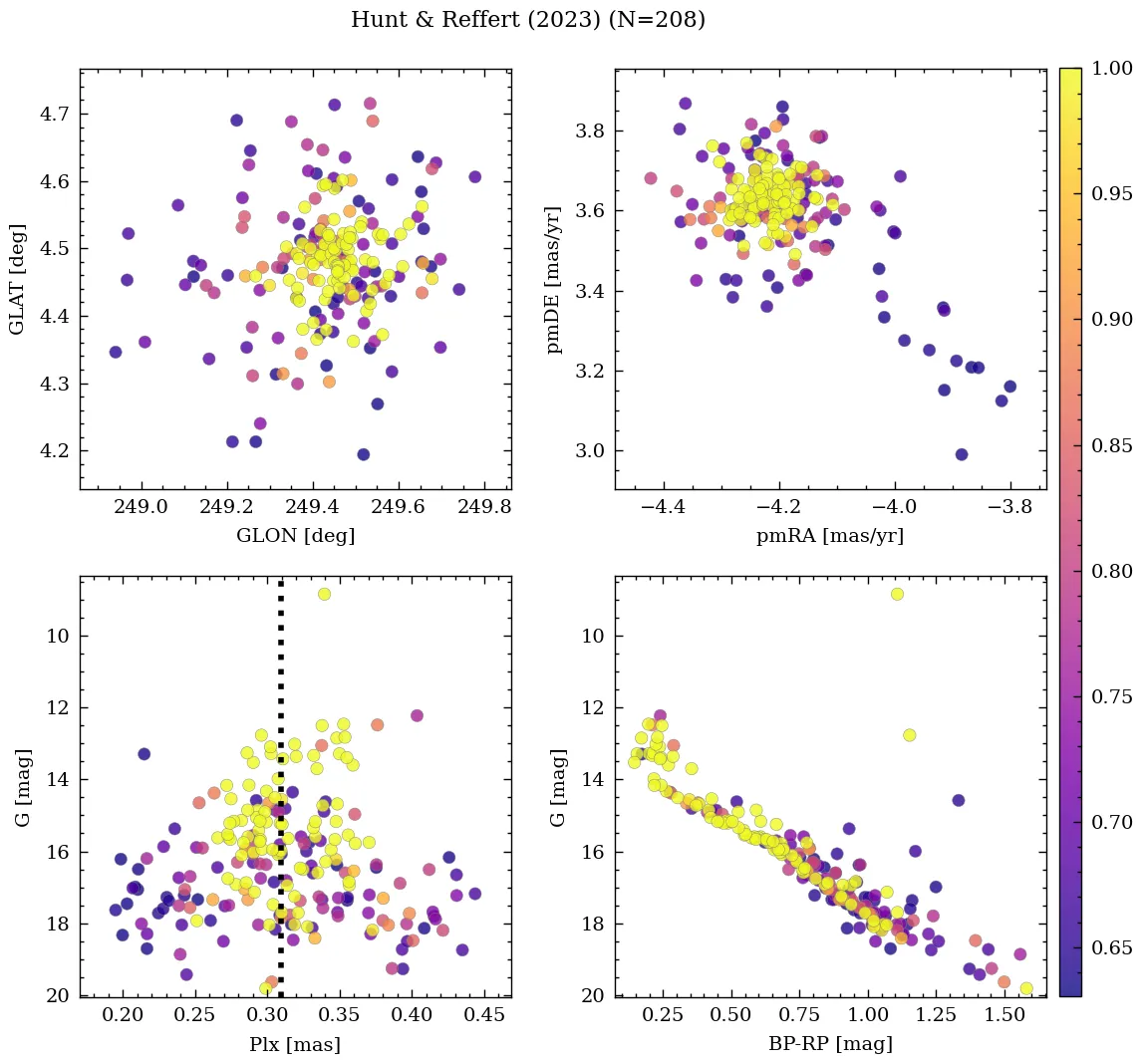 | Cantat-Gaudin & Anders | 2020 | 125.861 | -29.503 | 0.295 | -4.248 | 3.586 | β |