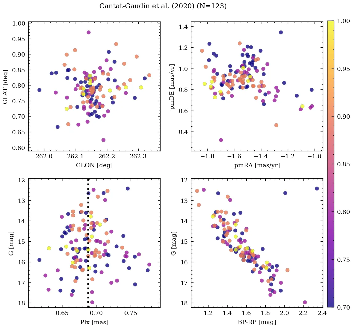 | Cantat-Gaudin & Anders | 2020 | 131.557 | -41.886 | 0.687 | -1.569 | 0.94 | β |