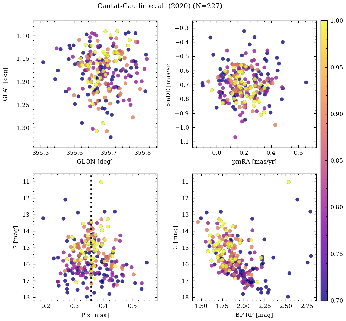 | Cantat-Gaudin et al. | 2020 | 264.916 | -33.224 | 0.355 | 0.194 | -0.705 | â |