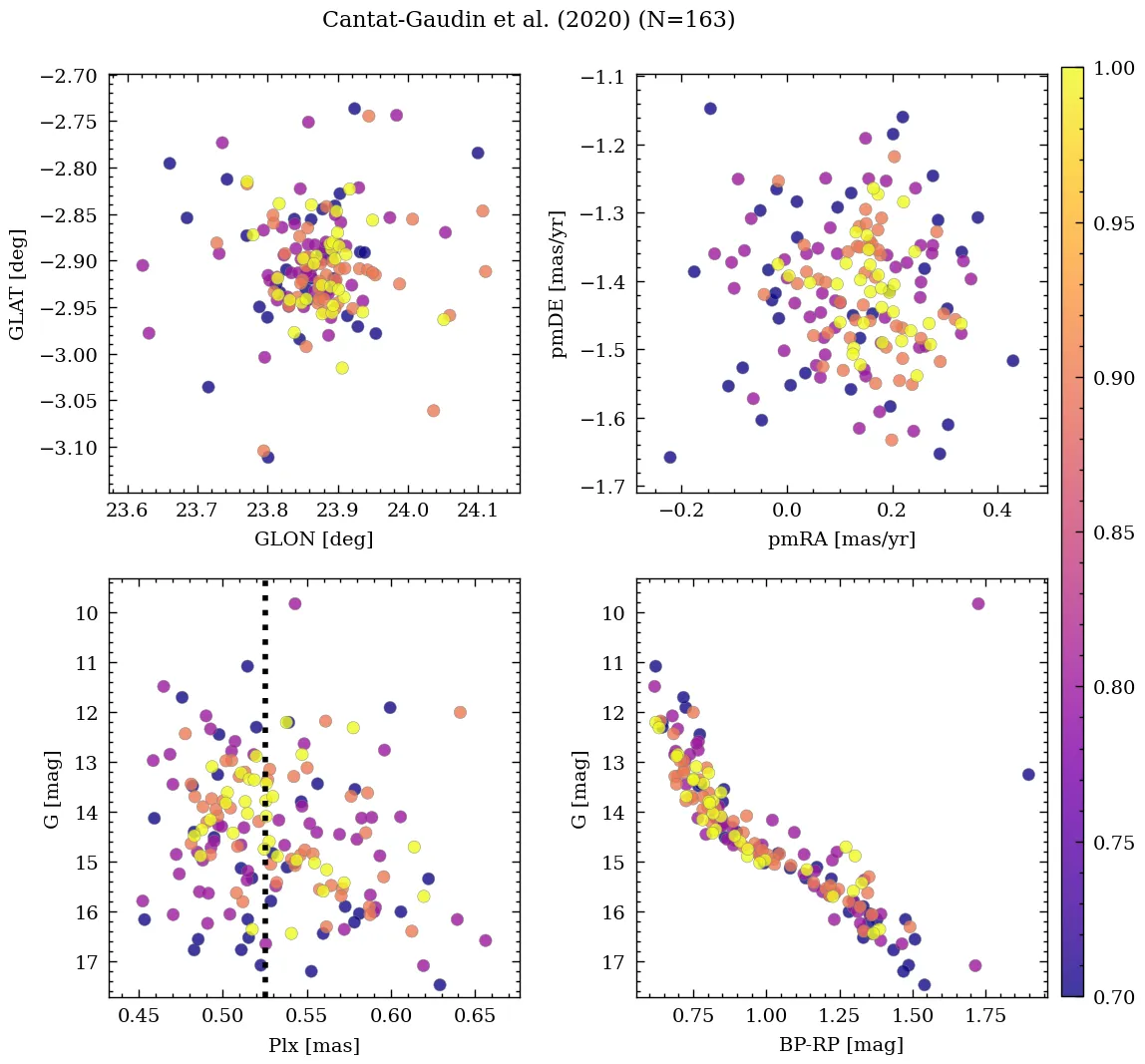 | Cantat-Gaudin et al. | 2020 | 281.317 | -9.386 | 0.524 | 0.144 | -1.411 | β |