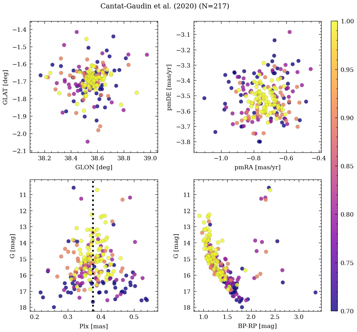 | Cantat-Gaudin & Anders | 2020 | 286.942 | 4.224 | 0.376 | -0.734 | -3.529 | β |