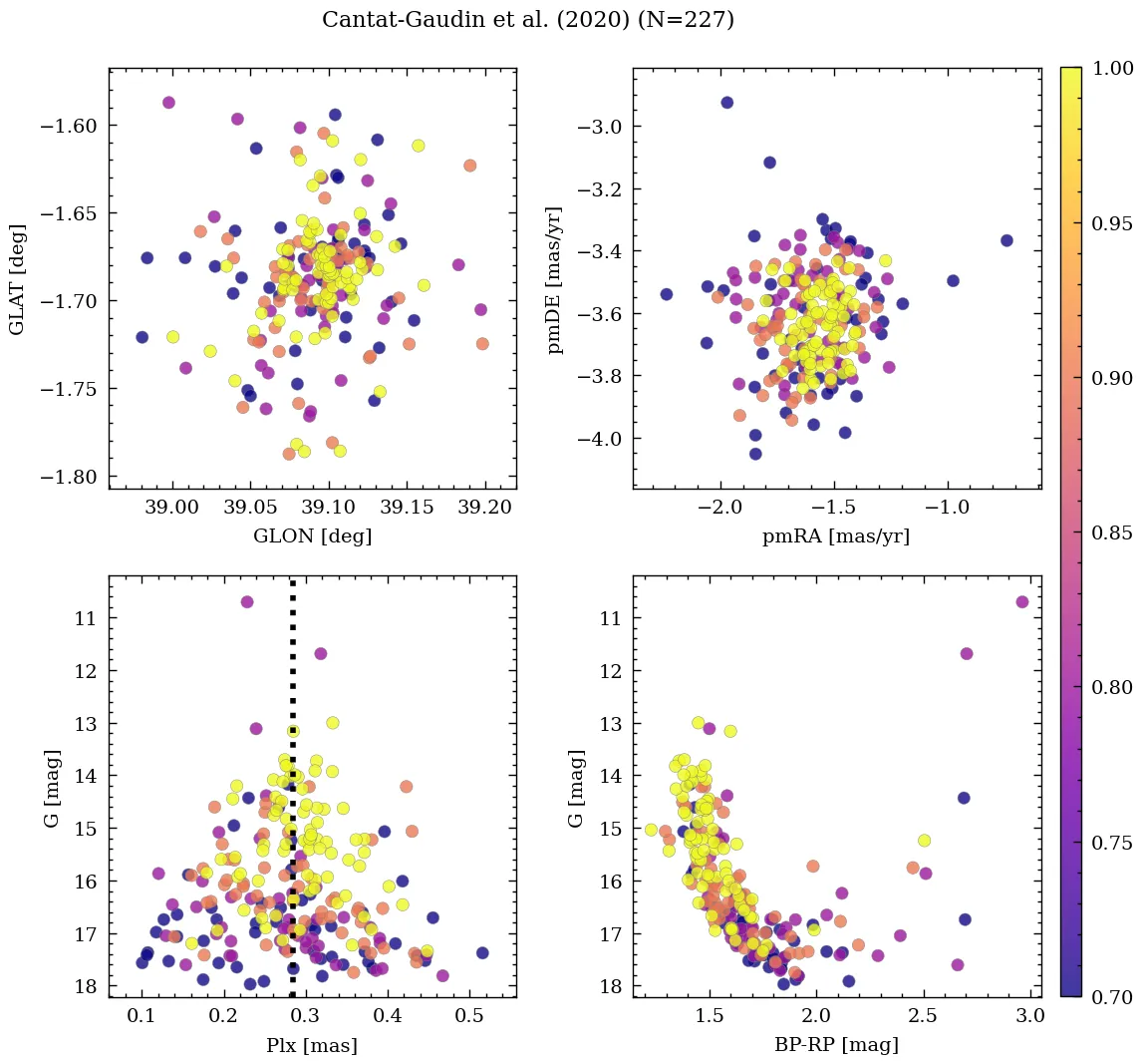 | Cantat-Gaudin et al. | 2020 | 287.181 | 4.711 | 0.281 | -1.584 | -3.631 | β |