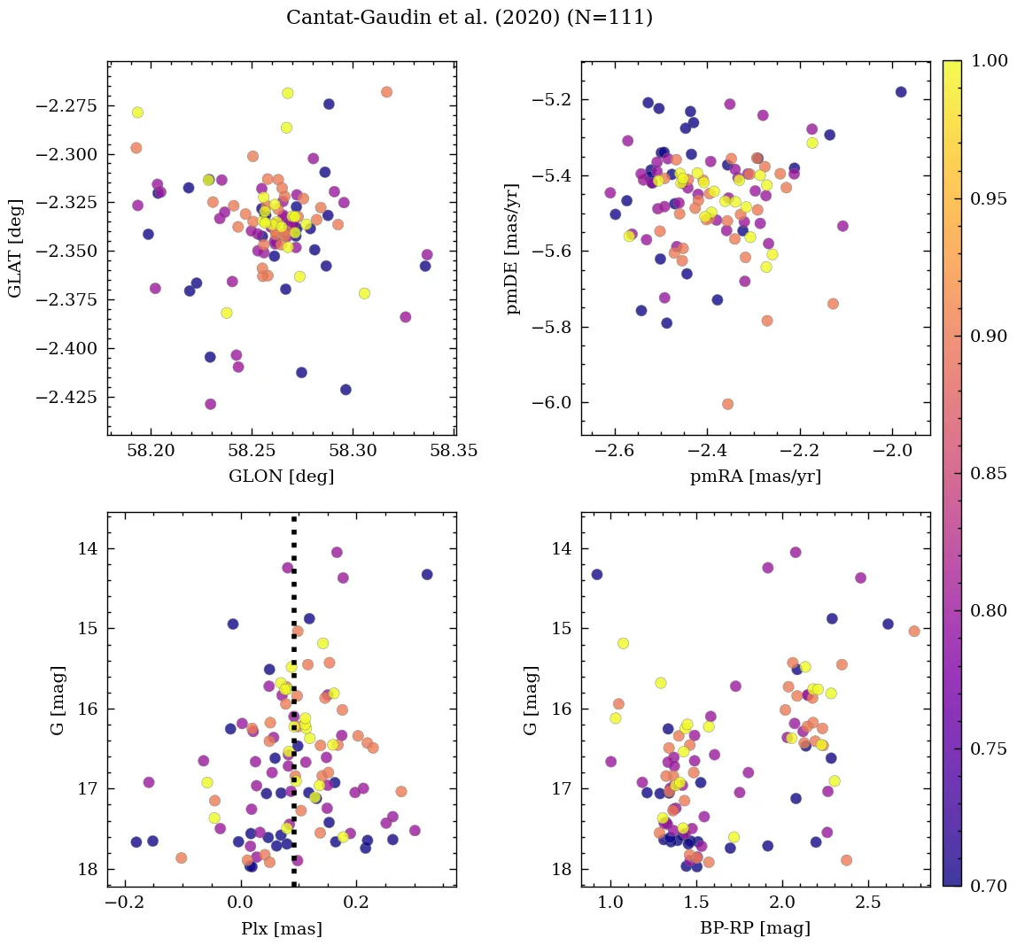 | Cantat-Gaudin et al. | 2020 | 297.22 | 21.213 | 0.103 | -2.418 | -5.465 | β |