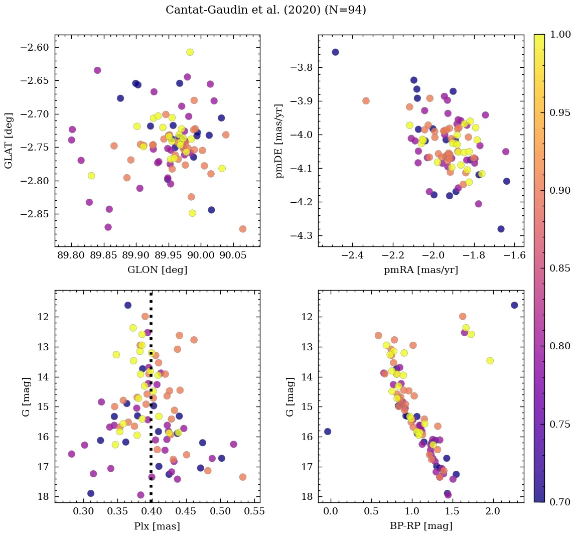 | Cantat-Gaudin & Anders | 2020 | 320.862 | 46.385 | 0.398 | -1.914 | -4.045 | β |