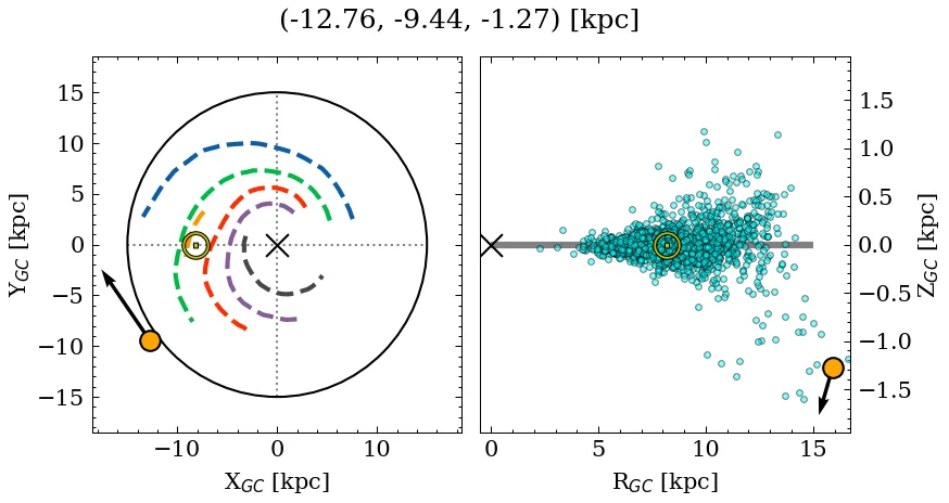 (*): The parallax distance estimate (~13.44 kpc) differs significantly from the median photometric distance (~9.52 kpc).