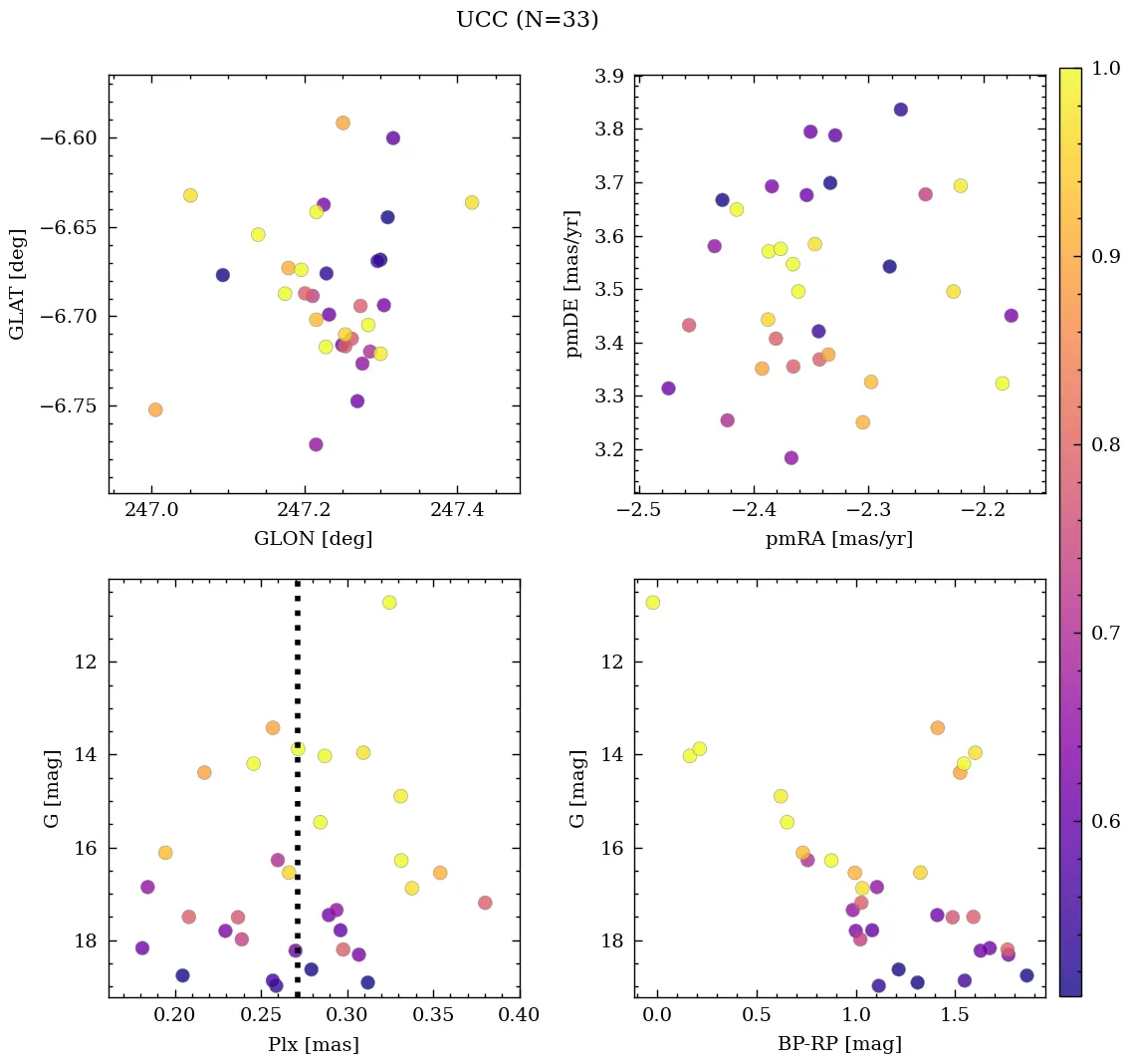 | UCC | 99999â | 113.314 | -33.476 | 0.272 | -2.354 | 3.496 | 73.827 |