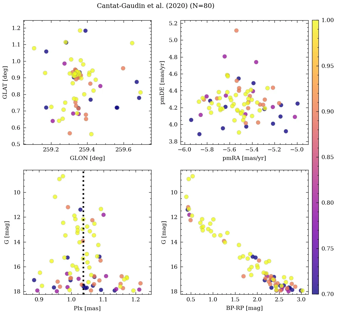 | Cantat-Gaudin et al. (2020) | AVNN=1.48, DistPc=941.0, AgeNN=7.0 |